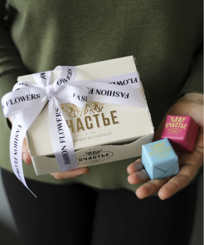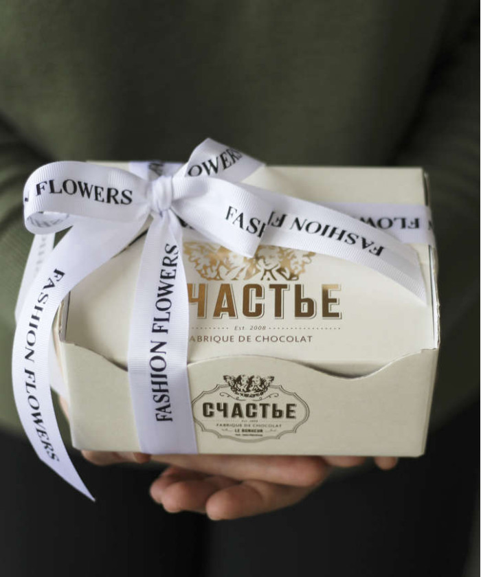 Конфеты на 100 % сделаны из натуральных ингредиентов, в них полностью отсутствуют консерванты, эссенциии, усилители вкуса.Конфеты СЧАСТЬЕ готовятся по классическому французскому рецепту с начинкой из ганаша и молочного шоколада.
