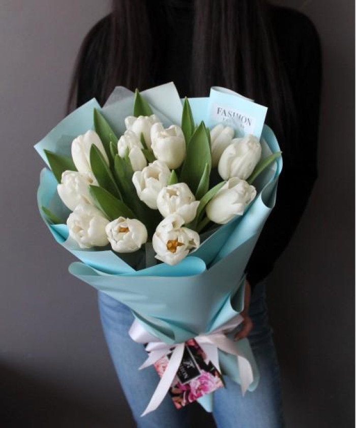 "Весенняя капель" букет из 15 белых тюльпанов №3140