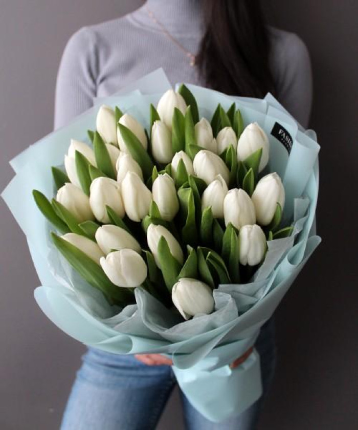"Безупречность" букет из 25 белых тюльпанов №3141