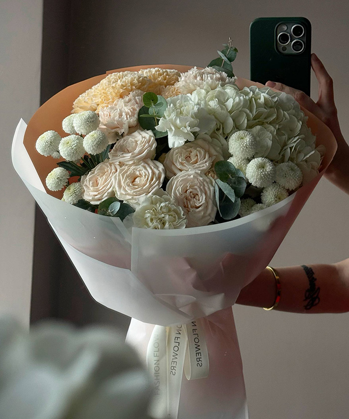 После сборки букета, перед доставкой мы всегда отправляем фото на согласование, чтобы вы могли оценить результат заранее и убедиться, что всё именно так, как вы хотите.