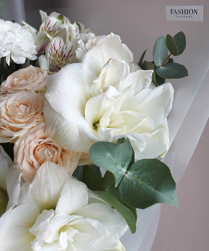 "Арктик нимф" авторский букет с белыми амариллисами №4525