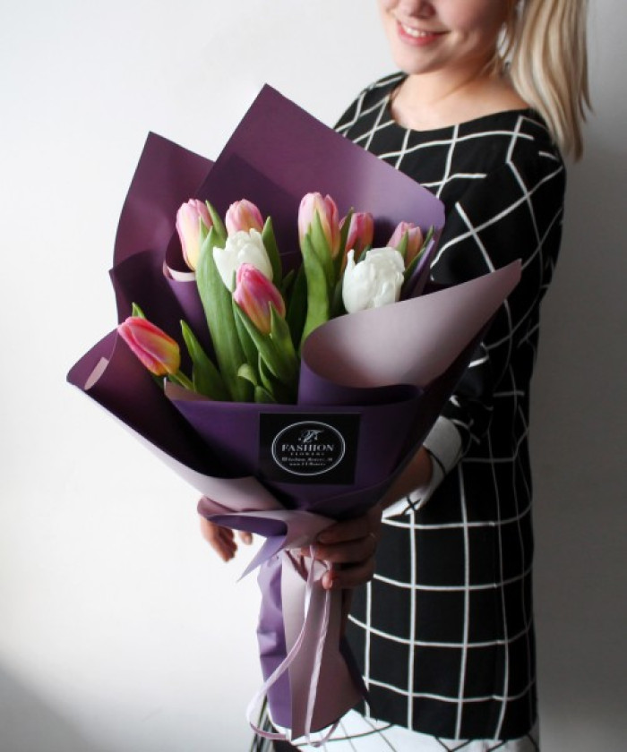 Тюльпаны ассорти - 9 шт., Фирменная упаковка.