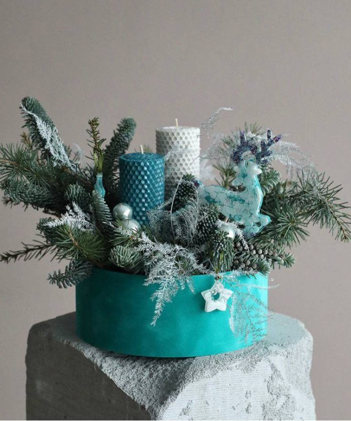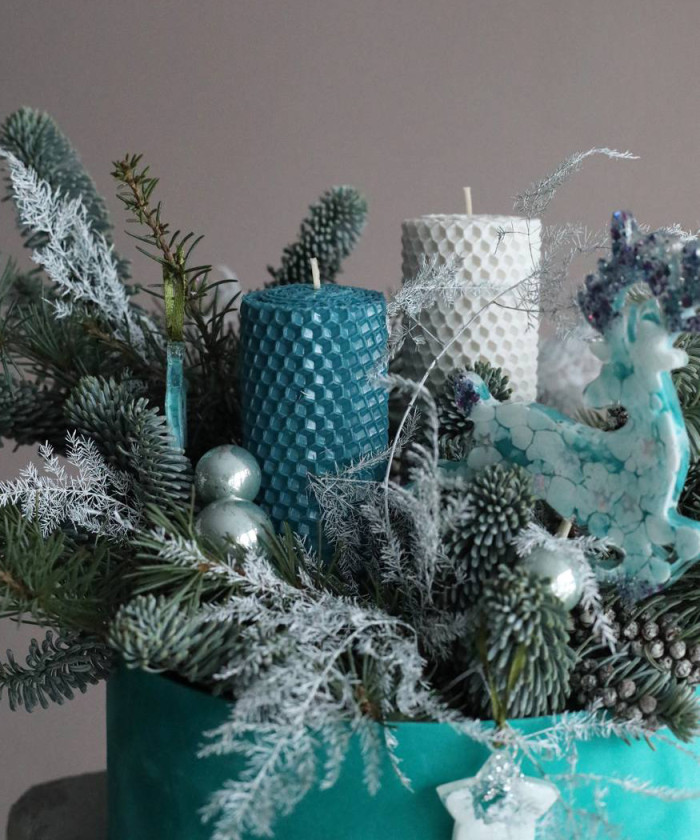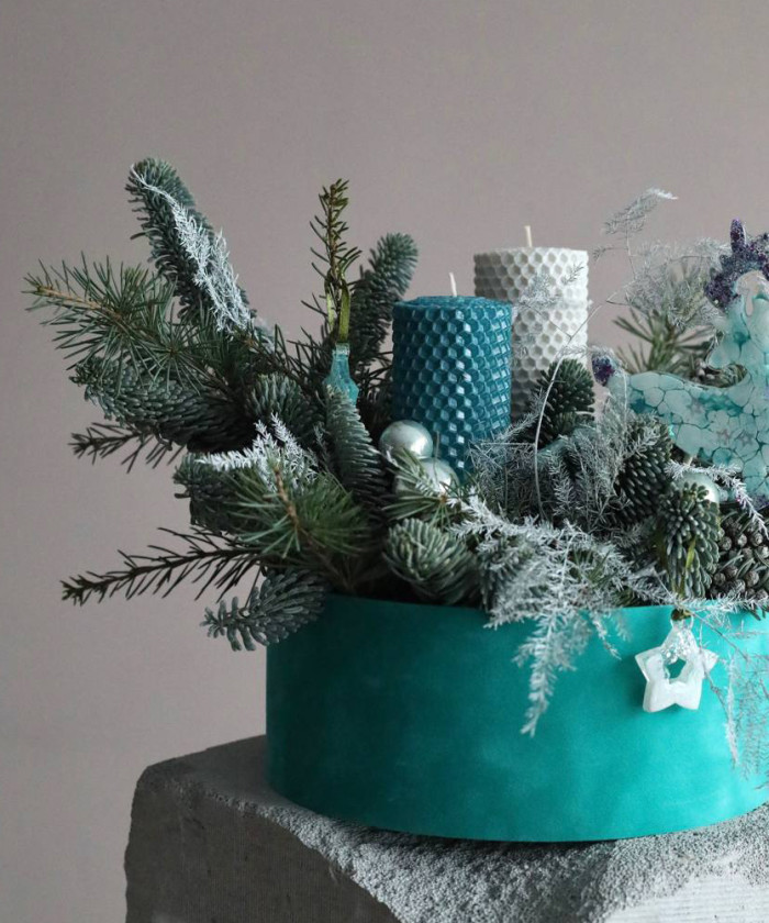 "Бирюза" хвойная композиция со свечами №0350