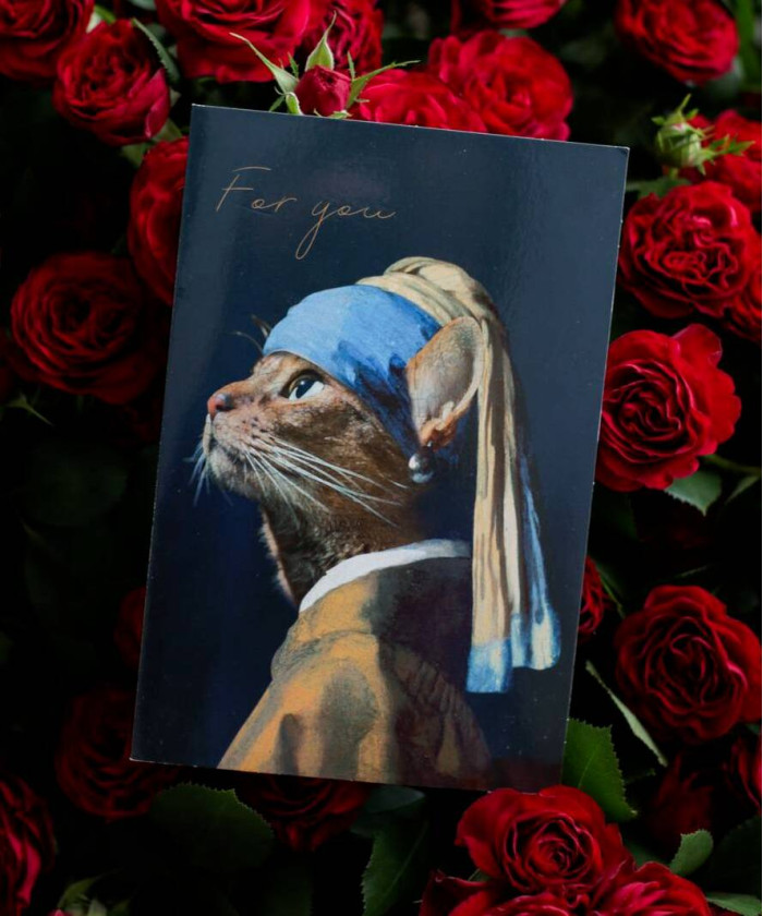 Есть картина "Девушка с жемчужной серёжкой", а у нас открытка "Кошка с жемчужной серёжкой"