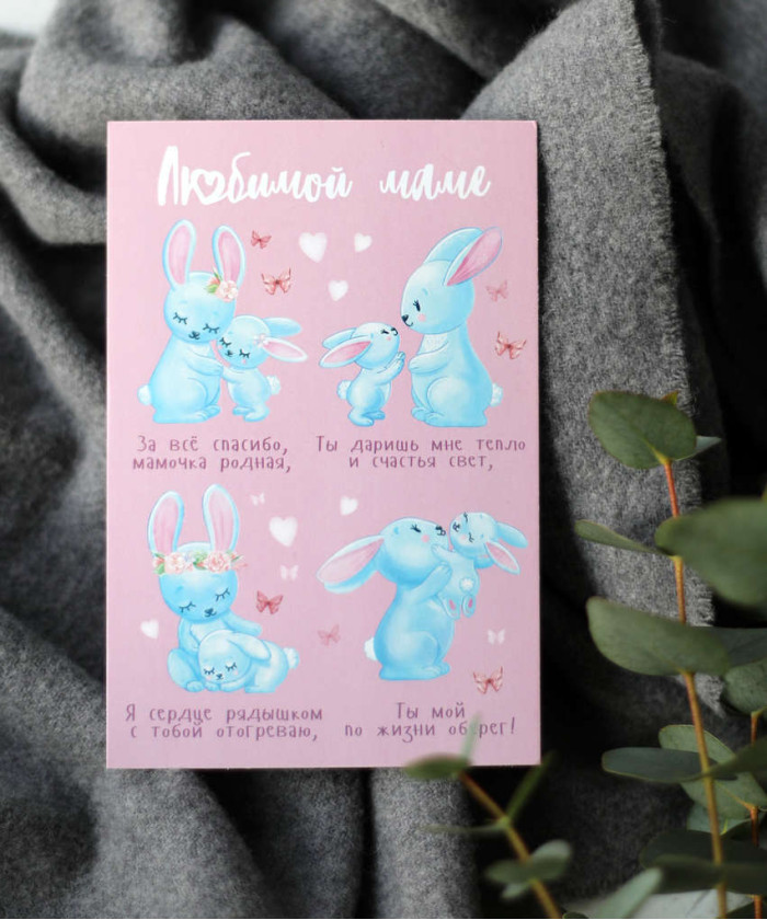 "Маме" открытка Зайка