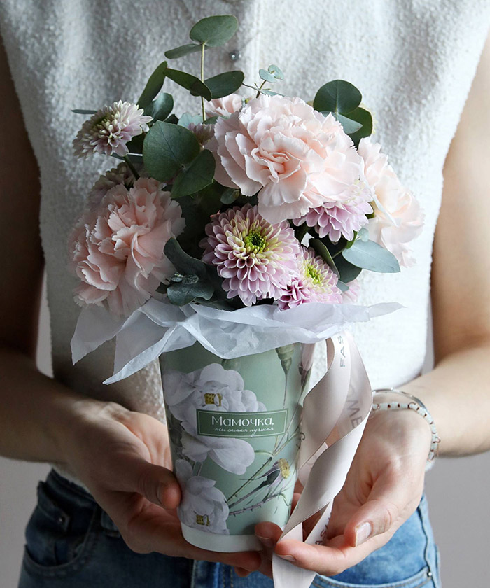 "Мамочке" сезонные цветы в крафт-стакане №6345
