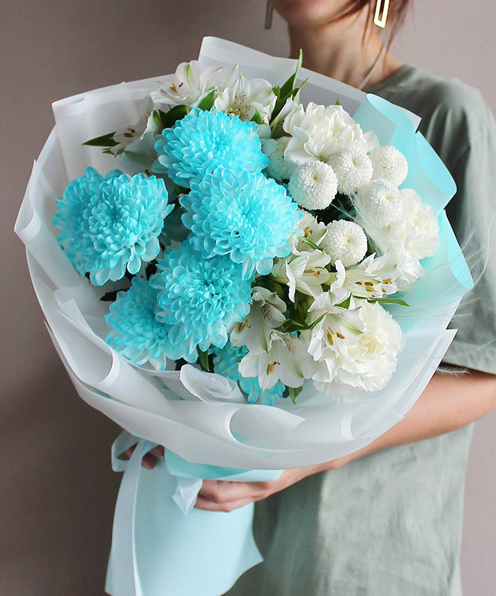 Хризантема кустовая крашеная голубая и аквамарин