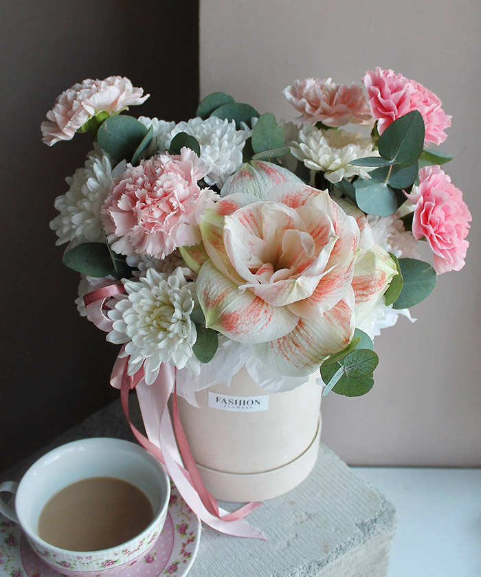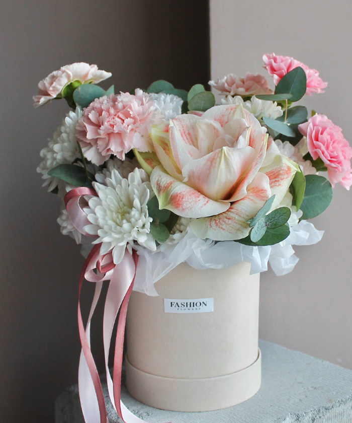 "Нежный бархат" бархатный бокс в нежных оттенках с амариллисом №6506