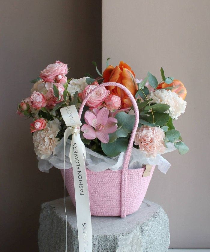Корзина «Нежный сад» — это романтичная композиция, словно небольшой цветущий уголок, собранный в аккуратной форме. Пышные бутоны, плавные линии и нежные оттенки создают ощущение уюта, лёгкости и гармонии.