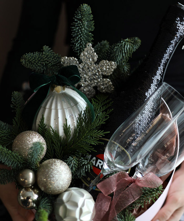 Алкогольная продукция предоставляется заказчиком и не входит в стоимость набора.Внимание! Fashion Flowers не нарушает Законодательство РФ.Через сайт невозможно приобрести корзины и наборы с алкогольной продукцией дистанционно и заказать доставку!Друзья, мы ждем Вас в нашем салоне, где с удовольствием изготовим подарочный набор с вашим напитком или другими составляющими.