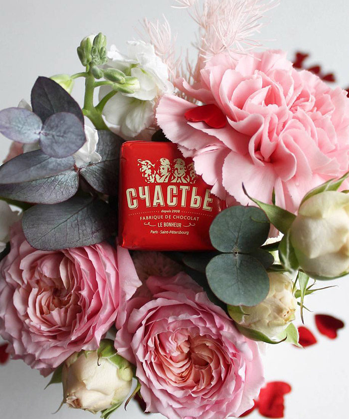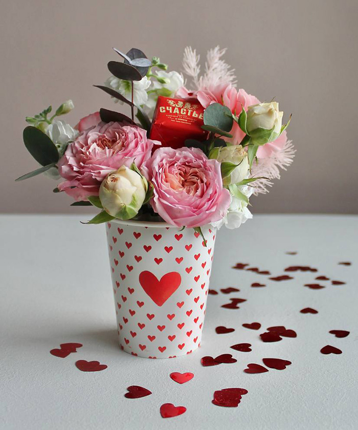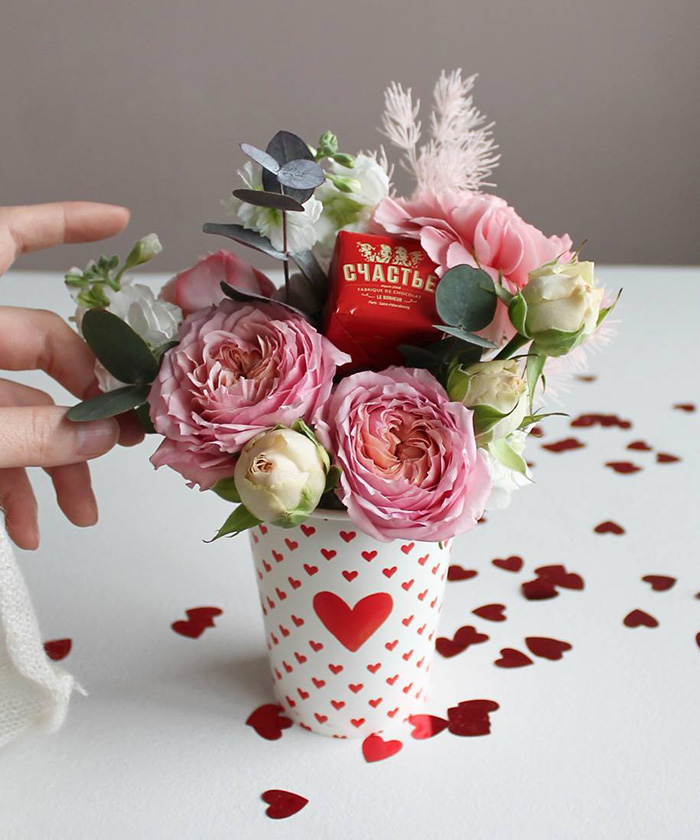 "Счастье" цветы в крафт-стакане с конфетой фабрики Счастье №5745