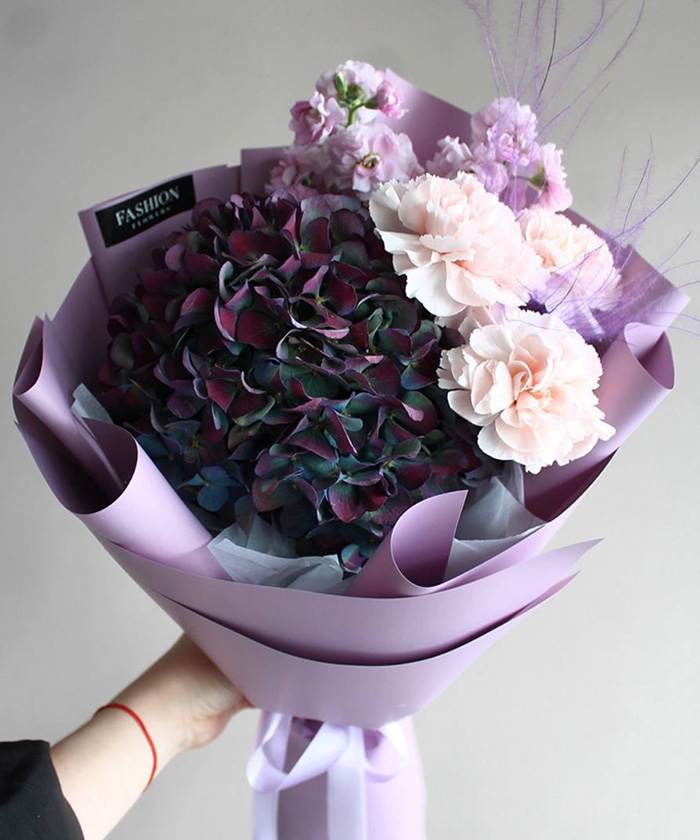 "Сияние аметиста" букет с гортензией Ауберджин №5769