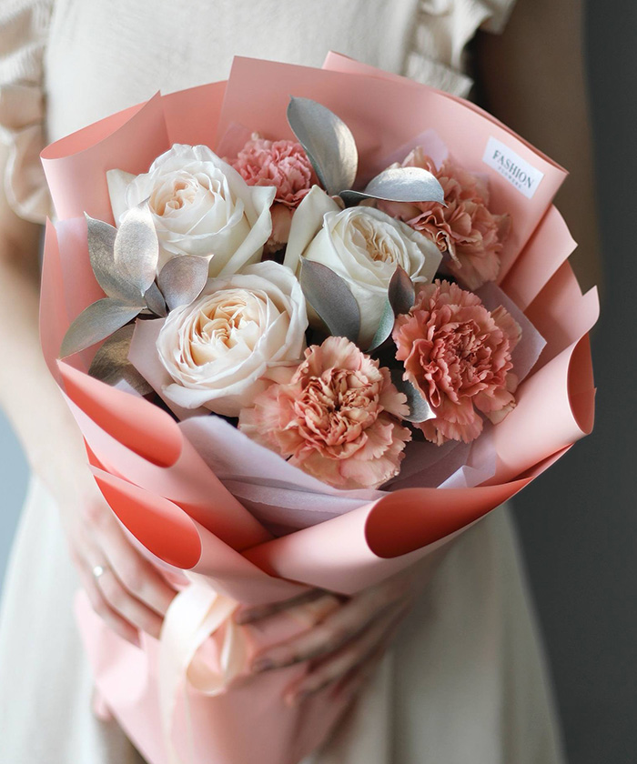 "Сияние нежности" пионовидные розы Охара и диантусы №2736