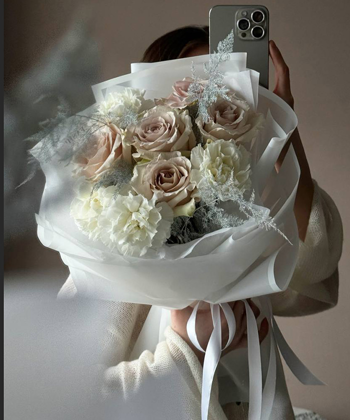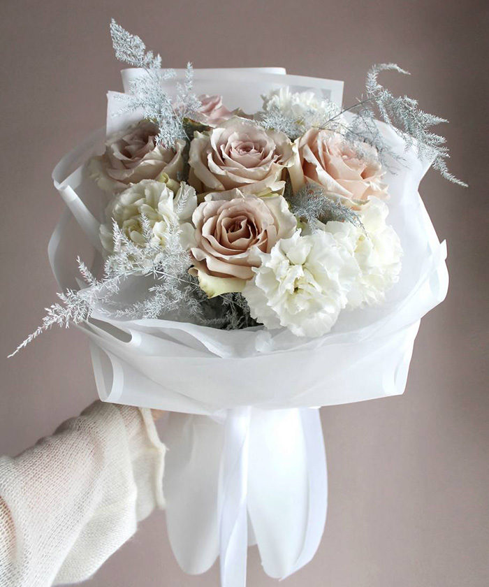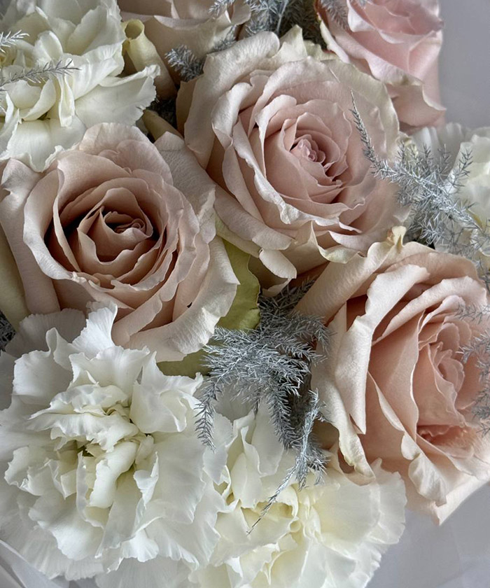 "Снежный танец" кремовые розы Квиксенд и белые диантусы №5334