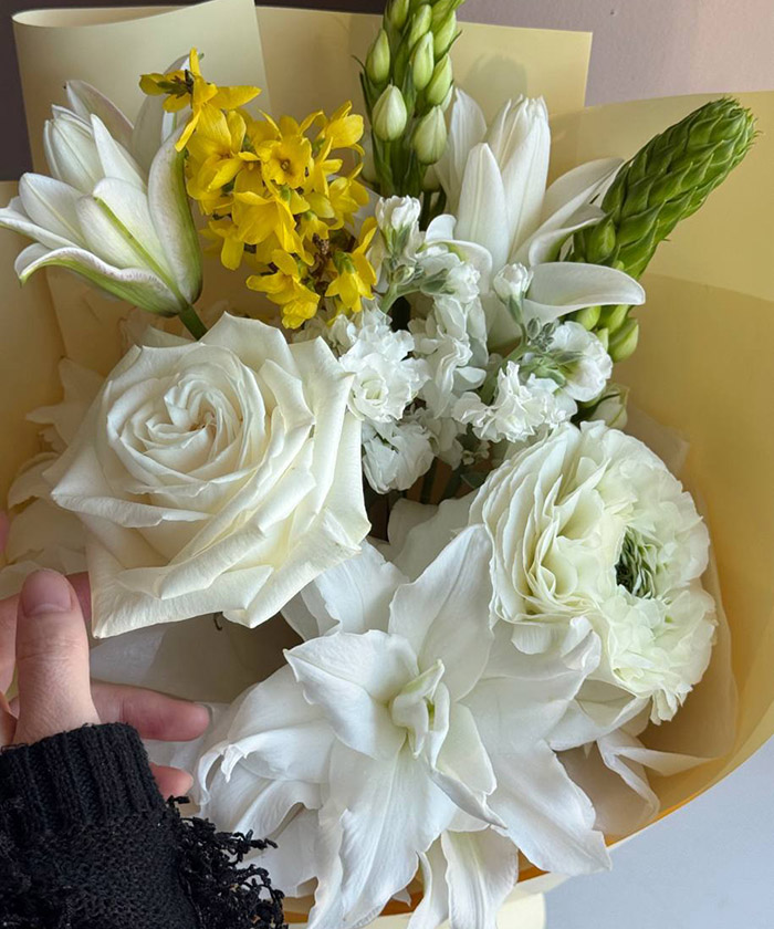 Идеален для поздравления, благодарности, знака внимания или подарка человеку, рядом с которым всегда «светло». Авторская сборка подчёркивает естественную красоту цветов и делает композицию живой, неформальной и по-настоящему тёплой.