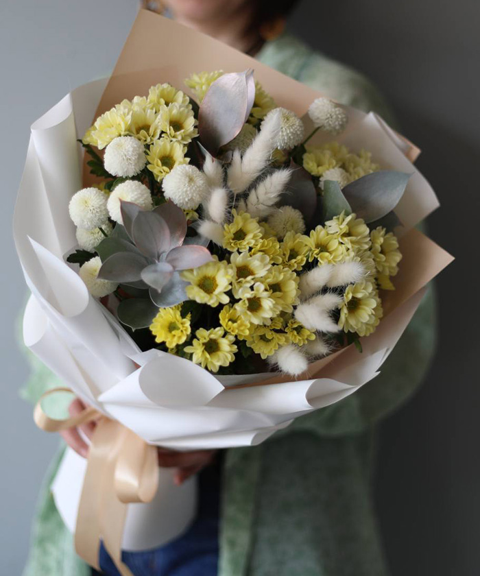 "Солнышко" букет с сантини Росси крем №5688