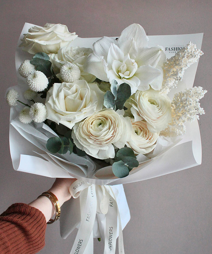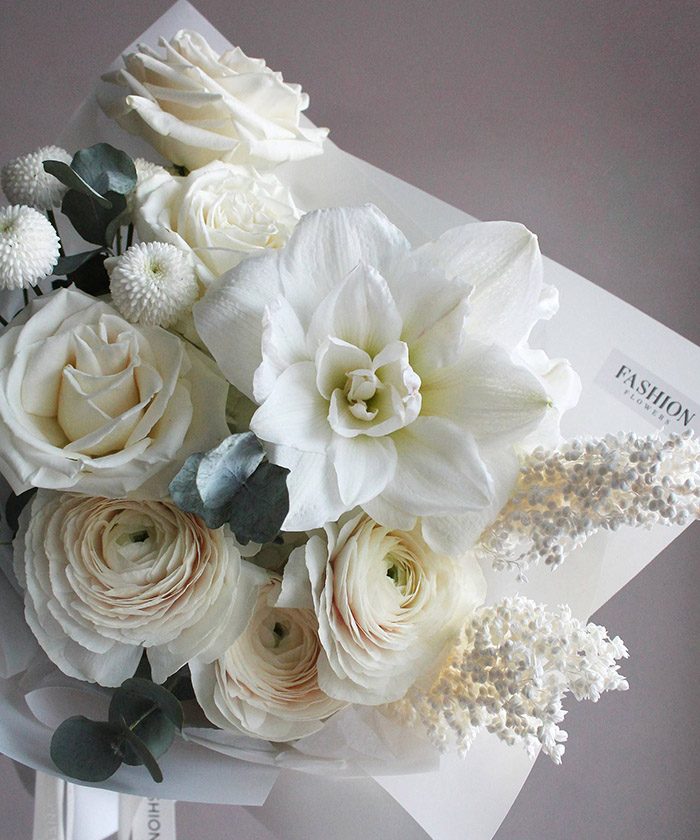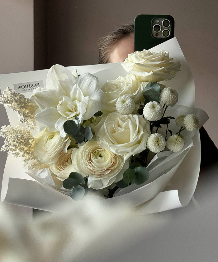 Авторский букет «Трепет» - это утончённая композиция из ранункулюсов и амариллиса сорта Арктик Нимф. Белоснежные и кремовые оттенки цветов создают лёгкость и изысканность, а форма букета подчёркивает элегантность каждого бутона. В Fashion Flowers вы можете купить этот авторский букет с доставкой по Иркутску. Наши флористы тщательно подбирают цветы и аккуратно собирают композиции, чтобы сохранить свежесть и красоту каждого элемента. Букет «Трепет» станет прекрасным подарком для особого случая, романтического сюрприза или стильного украшения интерьера. Он символизирует нежность, заботу и внимание к деталям.