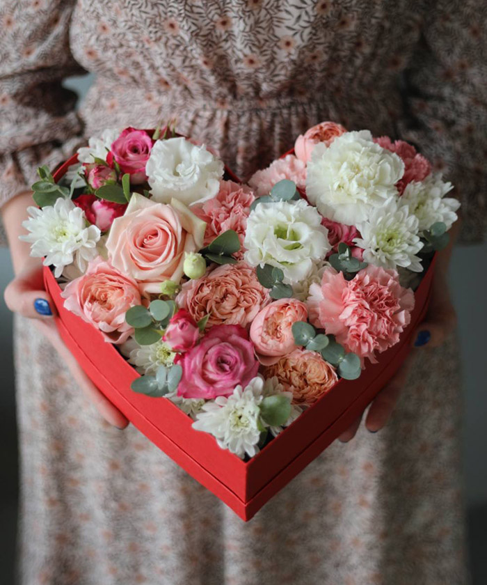 Коробка сердце большое картон 30 см., сборное наполнение цветами, Оазис.
