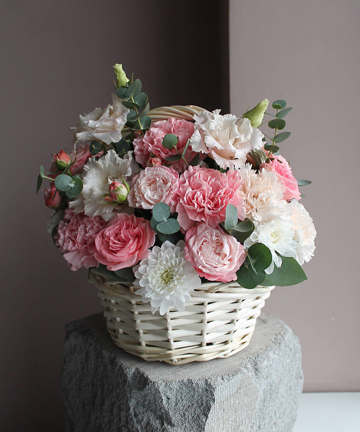 Корзина Ваниль — нежный сезонный букет в плетёной корзине, где каждая деталь наполнена теплом и гармонией.
