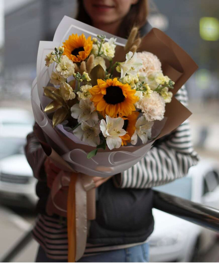 гелиантус 3шт., альстромерия 2шт., рускус краш. 3шт., маттиола куст. 2шт., диантусы 3шт., фирменная упаковка.Нет отзывов о данном товаре, станьте первым, оставьте свой отзыв.