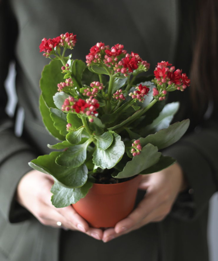 Каланхоэ Каландива - Неприхотливый и очень декоративный компактный кустик. Чудесное невысокое растение с толстым стеблем, усеянным гладкими или бархатистыми мясистыми листочками и пышными соцветиями мелких махровых цветочков теплых оттенков: красного, розового, желтого и лососевого. Цветет Каландива обильнее и дольше многих других своих собратьев, и непременно станет милым украшением вашего дома.
