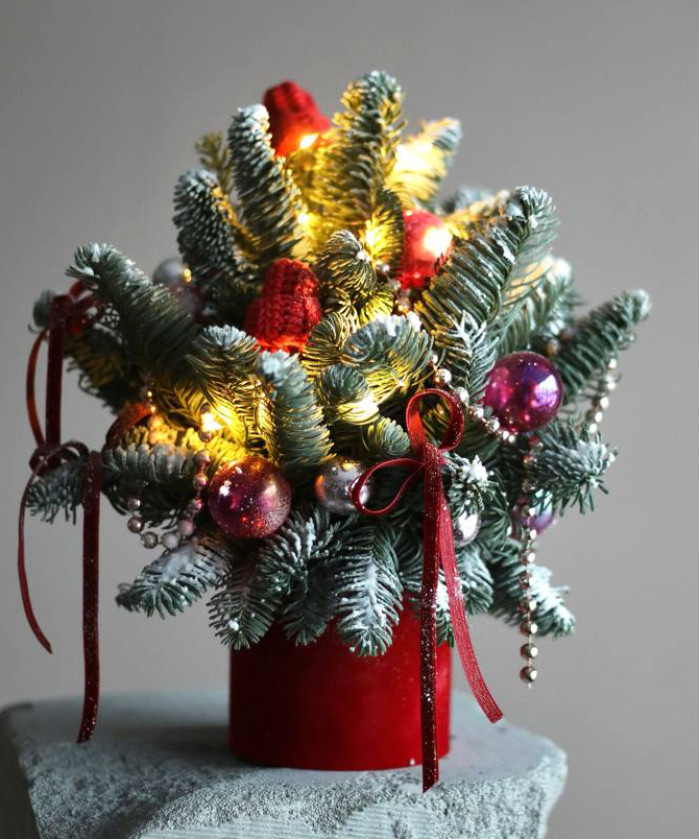 "Волшебный вечер" светящаяся, хвойная композиция№0346